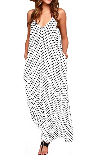 -. Title : LILBETTER Women V-neck Polka Dot P.R.Int Spaghetti Strap Boho Long Maxi Dresses