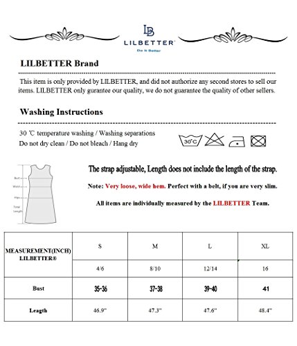 -. Feature : LILBETTER has registered US Trademark "LILBETTER",Reg.No.4723394. This item is only provided by LILBETTER, and did not authorize any second stores to sell our items. LILBETTER only gurantee our quality, we do not guarantee the quality of other sellers. / Style:Sundress,Sleeveless,Sling.Full-Length,Polka Dot / Small(US 4-6),Medium(US 8-10),Large(US 12-14),X-Large(US 16) / Very loose, wide hem. Perfect with a belt, if you are very slim. / Package Contents: 1x Dress (No accessories included)