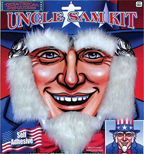 Whether you are having fun at a patriotic party or dressing up for Halloween, this facial hair set is the first start to looking like Uncle Sam. Combine with our other patriotic costume accessories to design the ultimate patriotic outfit.