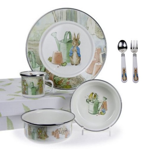 GOLDEN RABBIT, BEATRIX POTTER'S PETER RABBIT 4 PIECE FEEDING SET, WATERING CAN STYLE