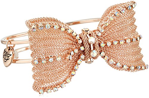Betsey Johnson Women's Mesh Crystal Bow Hinged Bangle Bracelet