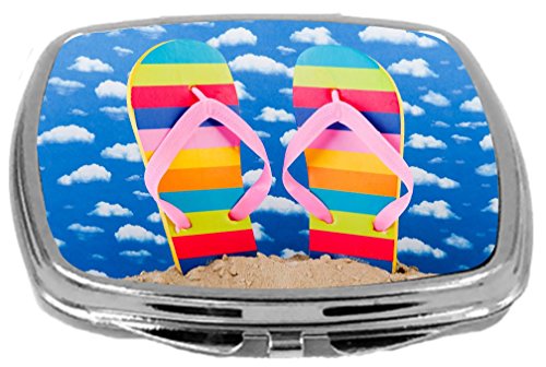 Rikki Knight Rainbow Striped Flip Flops in Sand Blue Sky Design Compact Mirror, 17 Ounce