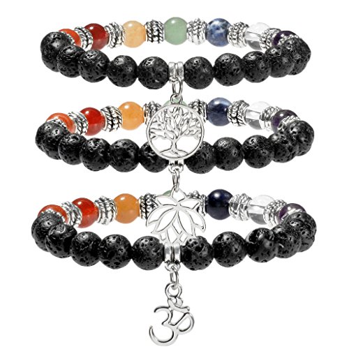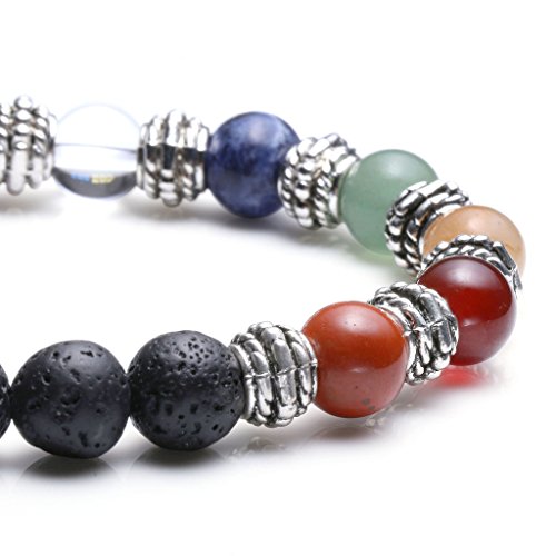 Material: Lava Rock Stone & 7 Chakra Stones & Alloy Charms (7 Chakra Stones: Amethyst, White Crystal, Sodalite, Green Aventurine, Yellow Aventurine, Red Agate, Red Stone) - Because the bracelet made by natural stone, each with unique color, the bracelet beads may not same as the picture shown.