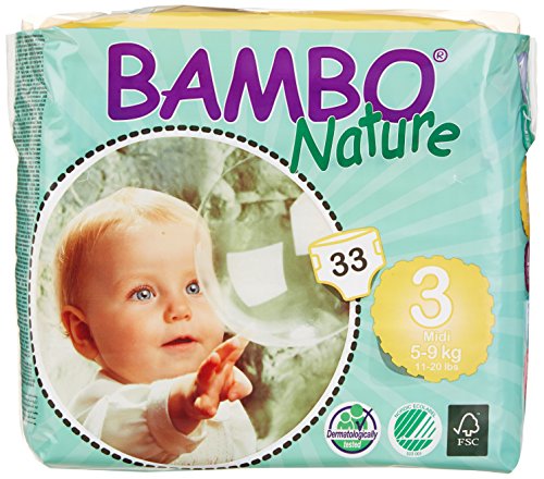 BAMBO NATURE PREMIUM BABY DIAPERS, MIDI, SIZE 3, 33 COUNT (PACK OF 6)