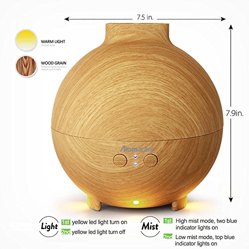 Using the latest aromatherapy technology, Aromacare ultrasonic aroma diffuser uses less oil than other diffusers and vaporizes without the use of heat-all the better to maximize the therapeutic benefits of your favorite essential oils.Our aroma diffuser uses cool mist instead of heat to protect the benefits of your essential oils, while ionic technology improves air quality naturally, and minimizes allergens, dust and pollutants.The 600ml large tank lets you enjoy up to 16 hours of continuous use, and an automatic shut-off when the water runs out.