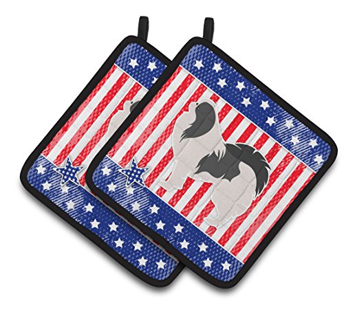 Caroline's Treasures USA Patriotic Japanese Chin Pair of Pot Holders BB3337PTHD, 7.5HX7.5W, Multicolor