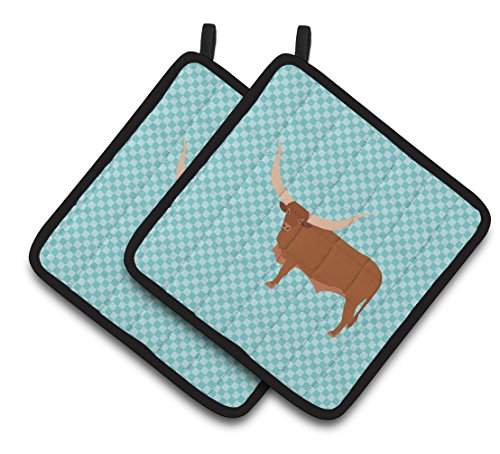 Caroline's Treasures BB7997PTHD Ankole-Watusu Cow Blue Check Decorated Pot Holder, 7.5" x 7.5", Multicolor