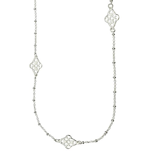 Beautiful cable chain with beads periodically spaced onto the chain is combined with ornate floral stamped links, approx 30 inches long and without clasp for easy wear. Entire necklace is 925 sterling silver imported from Italy. See Joyful Creations storefront for matching earrings. Chain is nickel free. Gift box included, color or style may vary.Feature