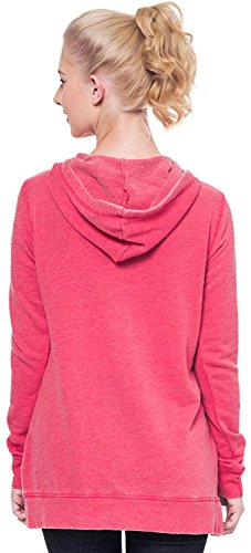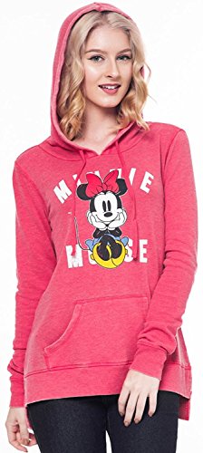 Disney Juniors pullover hoodie with front pouch pocket. Front graphic prints with Mickey & Minnie Mouse are distressed for vintage/retro look. Long sleeves, high-low hem, and drawstring hood. It is Light Weight, French terry and is very soft.Feature