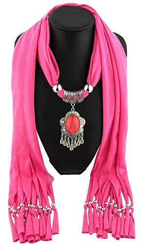 Title : Urban CoCo Women's Necklace Scarf Drop Pendant Beads Bohemian Tassel Shawl (hot pink)