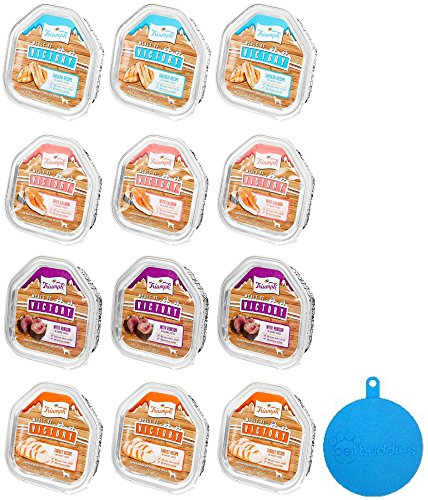 Triumph Meals of Victory Wet Dog Food in Savory Juices in 4 Flavors - Chicken, Venison, Turkey and Salmon - 3.5 Ounces Each, 12 Trays Total - Plus Silicone Dog Food Can Cover -13 Items Total