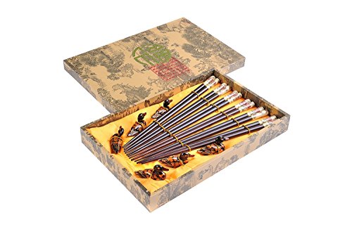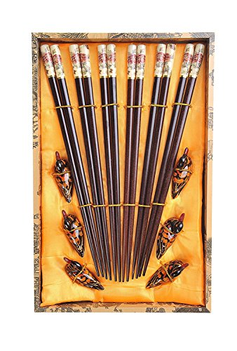 Abacus Asiatica: "Moutan Peony" elegant chopstick set, carved-wood chopsticks in decorative box (6 pairs of chopsticks with rests), Mod. CB-S6-G-H06 (US)