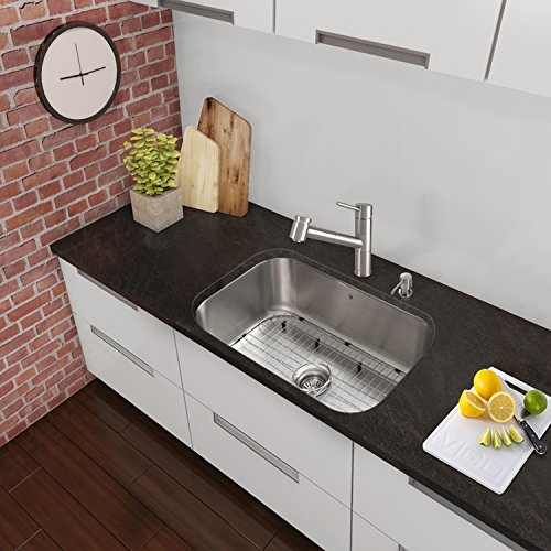 VIGO 30 inch Undermount Single Bowl 18 Gauge Stainless Steel Kitchen Sink with Grid and Strainer