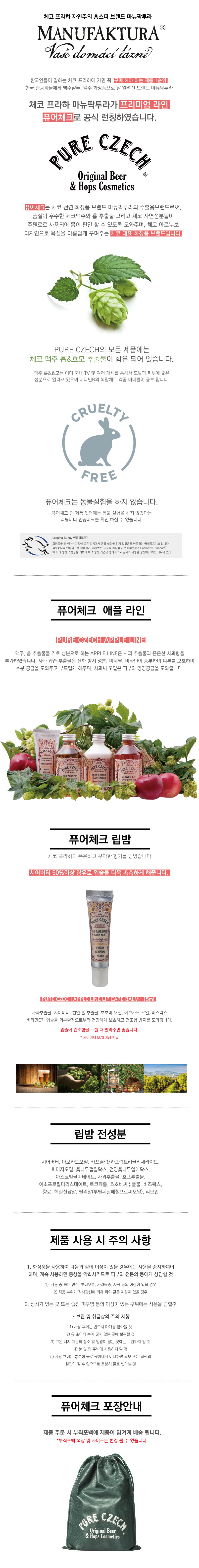 사과추출물, 시어버터, 천연 홉 추출물, 호호바 오일, 아보카도 오일