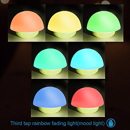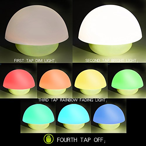 Studio : Veesee Publisher : Veesee Binding : Kitchen Product Description Features This is a cute little light. It's small and portable, so you can easily move it around where you need light. It is a colorful mushroom tumbler light. Import super bright led, eye protection, energy saving,environment protection,long lifetime. Adopt safe, non-toxic silicon for the light cover. 3 Lighting modes: Soft light, Strong light, 7 Colorful light. Touch Sensor Dimmable LED Night Lights. Application: Children' s Room, Hallway, Bedroom, Bathroom, Living Room, Outdoor, etc.