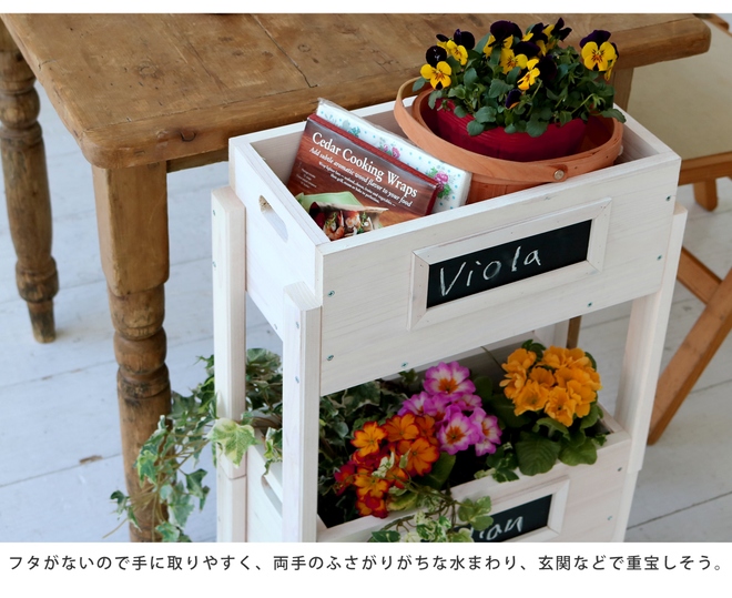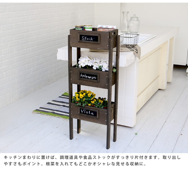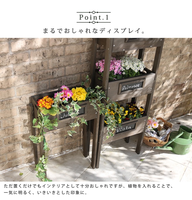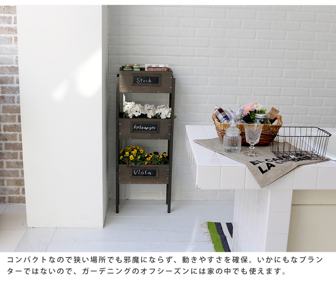 ●上段にプランターを、下段にはじょうろやスコップを入れると、