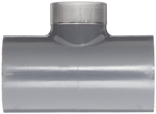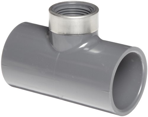 Spears 802-SR Series PVC Pipe Fitting, Tee, Schedule 80, Gray, 1" Socket x Stainless Steel Reinforced NPT Female