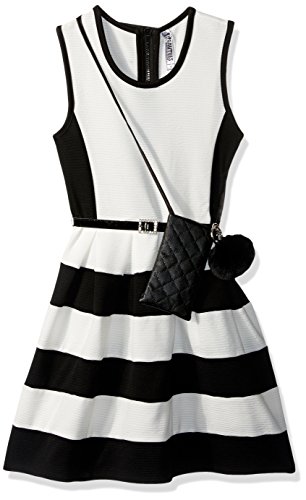 Beautees Big Girls' SL/Less Mixed Colorblock Skater Dress, Black, 12