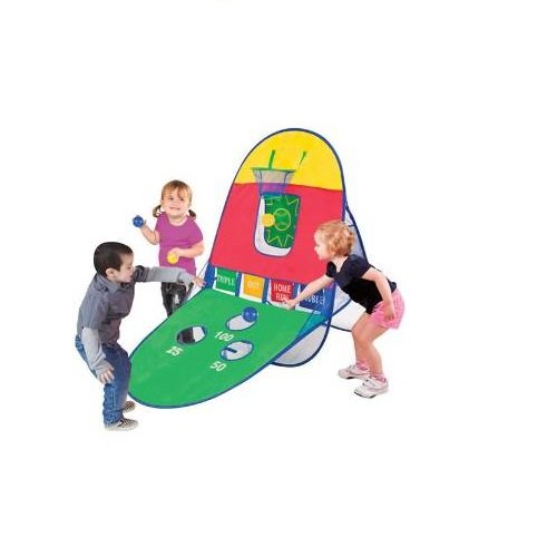 -. Feature : 3 different kinds of fun games: basketball, pitching and speedball / Ball return for faster play / Playhut's patented twist-n-fold technology / Made of non-woven and nylon binding materials / Recommended for ages 3 years and up