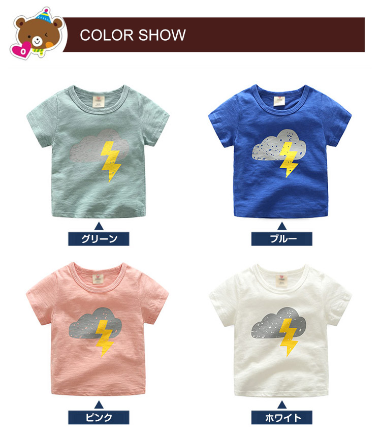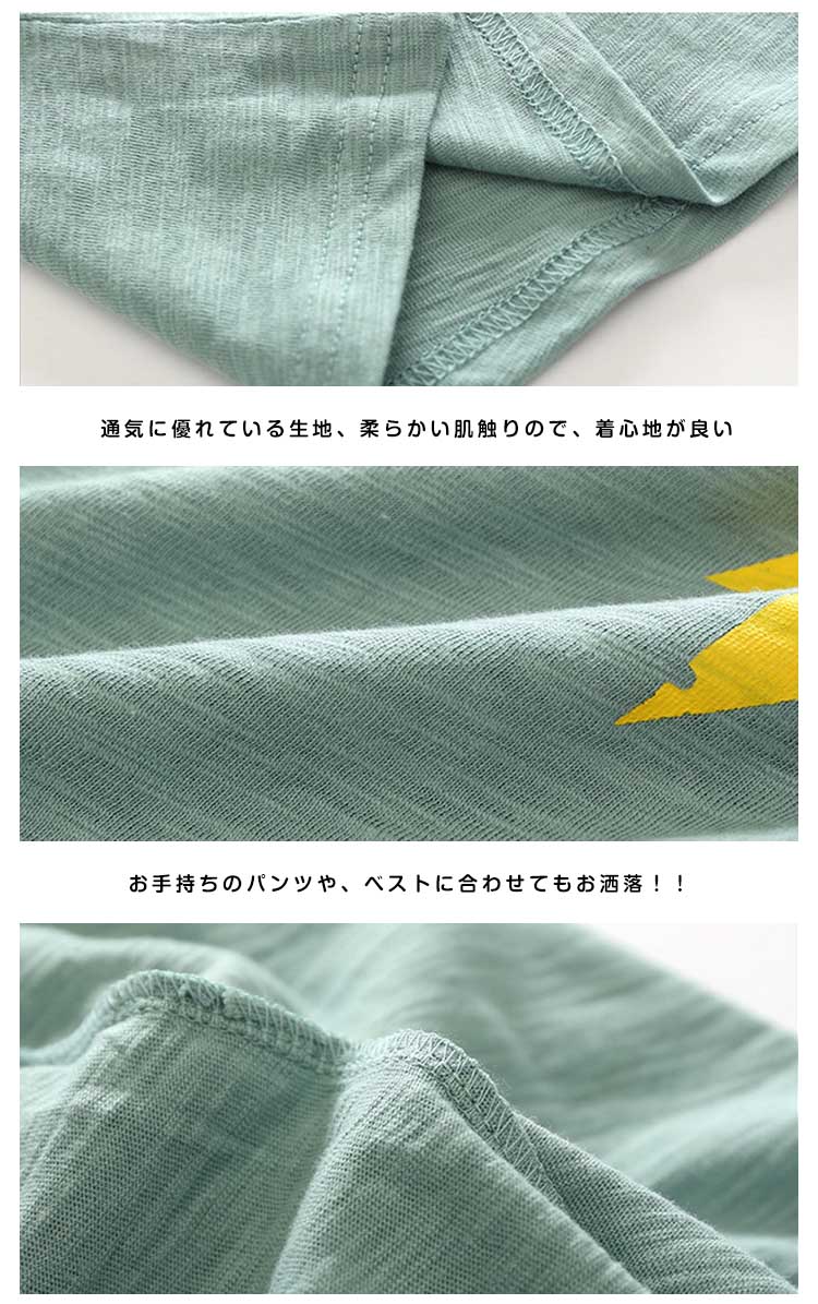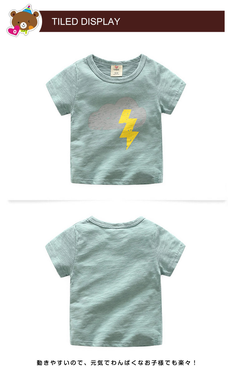 | 色柄選べるオシャレなプリントTシャツ♪ 動きやすいので、元気でわんぱくなお子様でも楽々!ユニセックスデザインですので、女の子でもお使いいただけます!シンプルでクセのないデザインですので、合わせやすい! | |