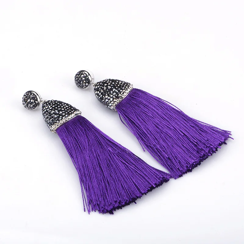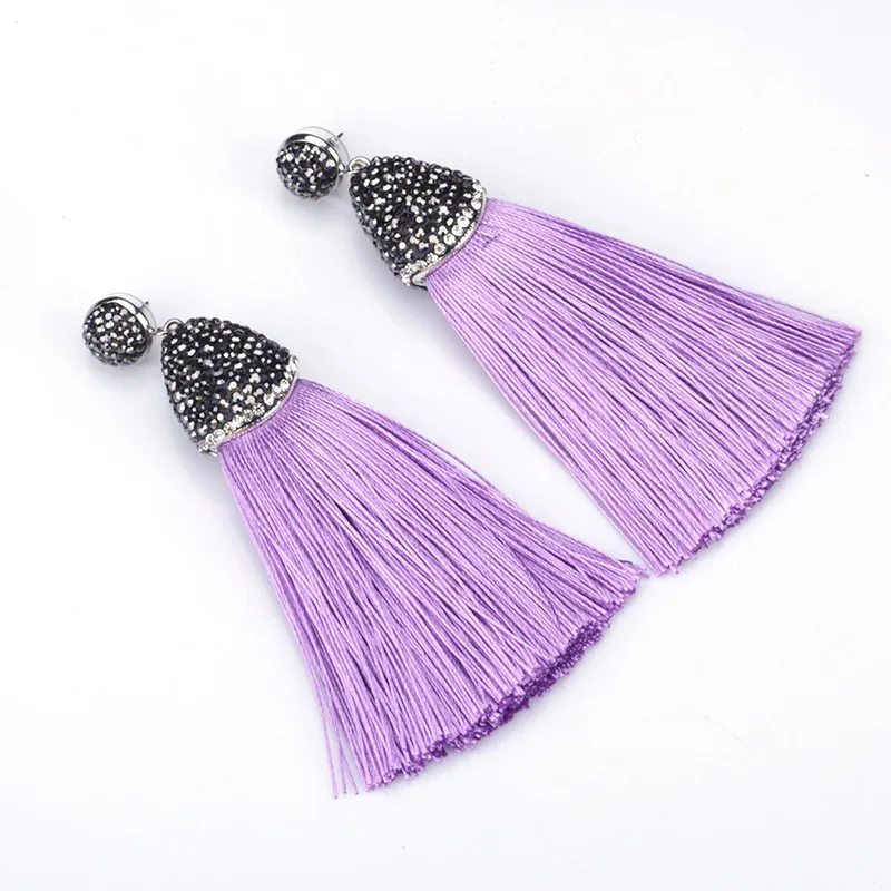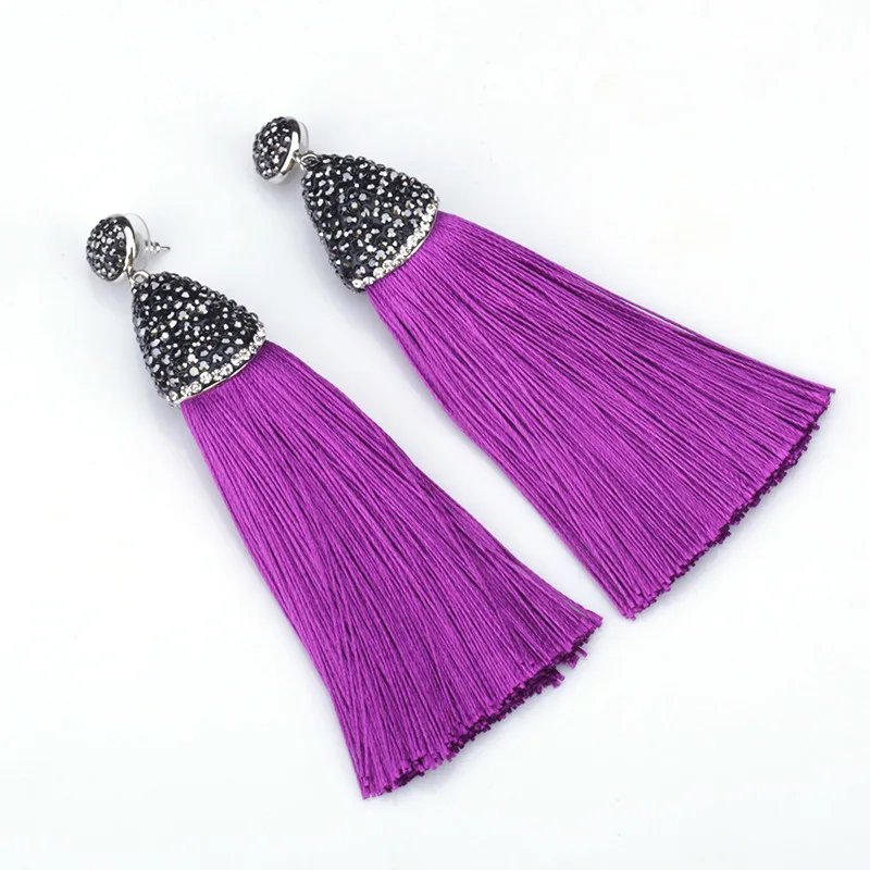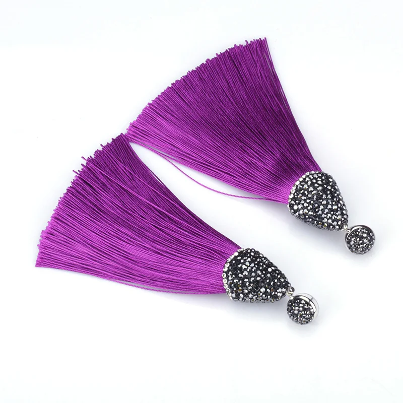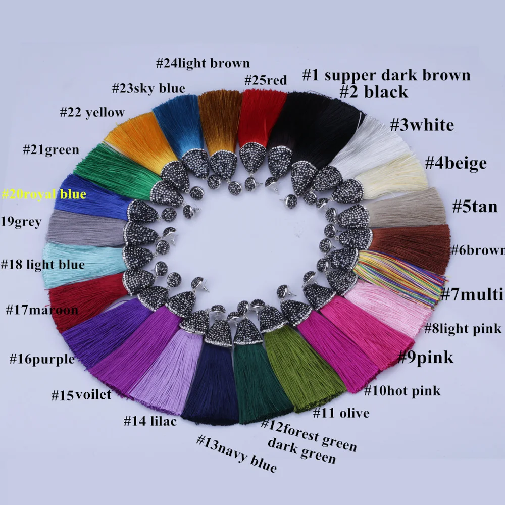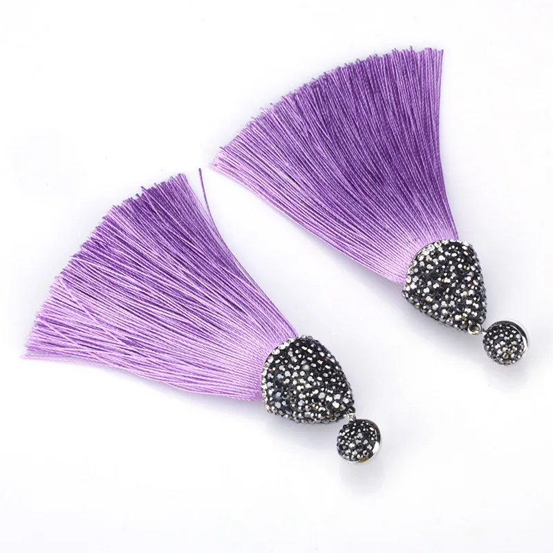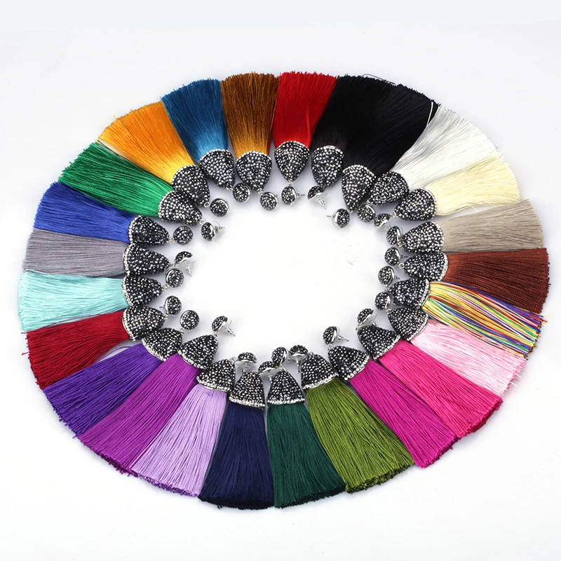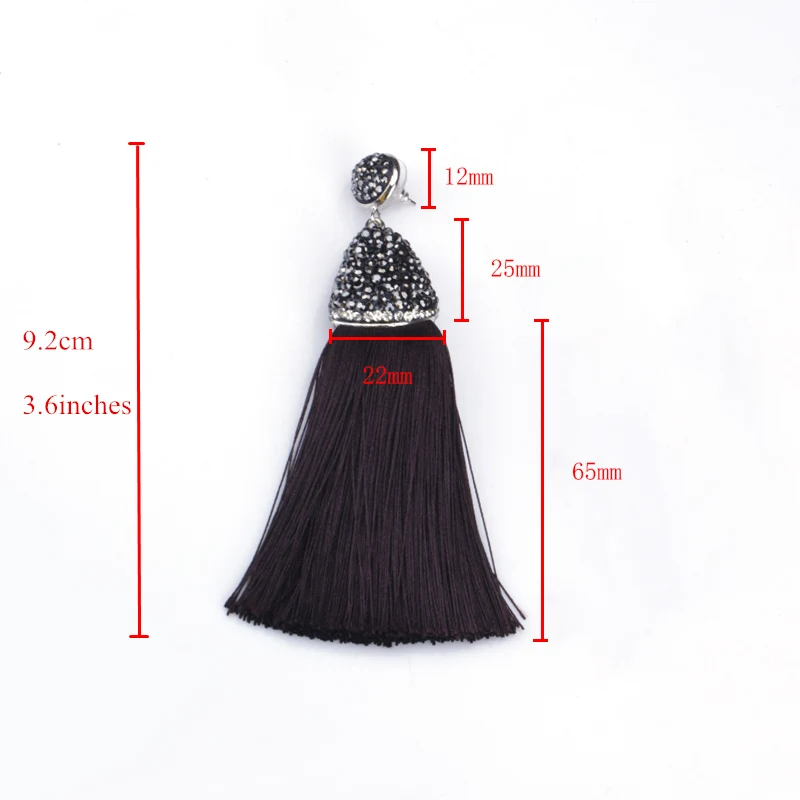 material:silk fabric tassel + black and white rhinestone bead cap+stud