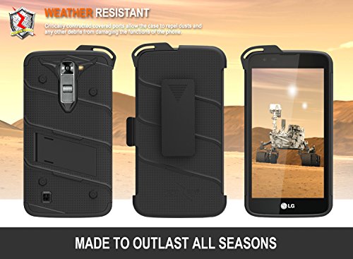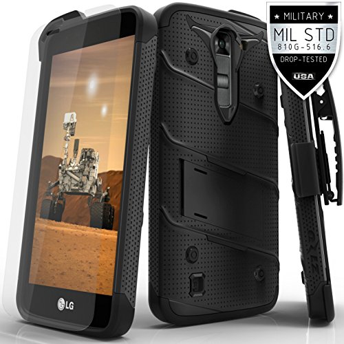 Protective, attractive, and exclusive. The perfect 3 words to describe the Zizo [Bolt Series]. When it comes to finding a reliable LG K7 case, the Zizo Bolt Cover is definitely your first choice. This product features a dual-layer case that is engineered to disperse impact force when dropped. A soft [Shock Absorbing] Tetra Polyurethane with an [Impact Resistant] Polycarbonate Shell is the secret behind Zizo Bolt Cover's protection. This bundle also includes a heavy duty 360 degree rotatable holster belt clip and a built-in kickstand to provide additional versatility and functionality while using your device. Aesthetically crafted with over 10 color variations to choose from to convey the perfect platform to express your style. The Zizo [Bolt Series] meets 12 Feet Military Grade Drop Test 810.1-G Certification. We know how important your phone's protection is to you, so we also included a Zizo [Lightning Shield] LG K7 screen protector FREE with every purchase. We also made this LG K7 case compatible with LG K8, LG Tribute 5 LS675, LG Escape 3, LG Treasure L52VL and LG Phoenix 2 to give you endless versatility. Our goal is simple: to provide the best value in products available. Zizo is a second-generation family company based out of Southern California. We're a New school company with Old school traditions. Become a part of the ZizoFamily today!Feature