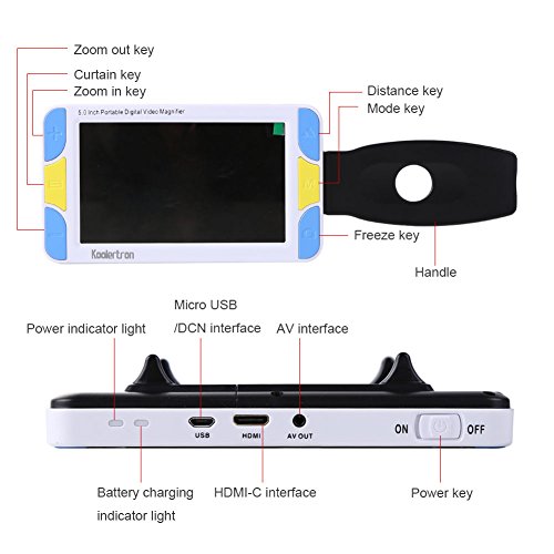 Koolertron 5.0-inch Handheld Bewegliches Video Digital Magnifier Elektronische Lesehilfe mit Vielfaltigen Farbmodi mit Wiederaufladbaren Batterie