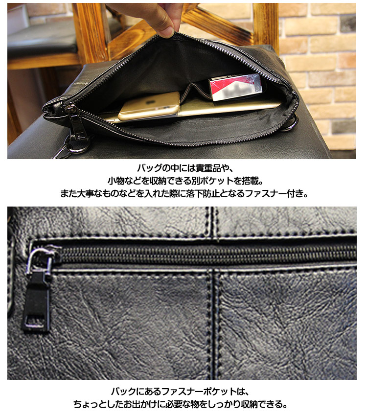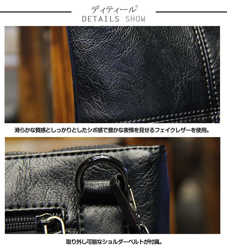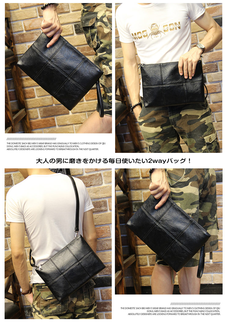 | 大人の遊び心が詰まった逸品。カジュアルスタイルを格上げする、アレンジ自在のショルダー・クラッチバッグ。フォーマルからカジュアルまで相性は抜群!普段使いからパーティ、デートにまで幅広く役立ちます。大人の男に磨きをかける毎日使いたい2wayバッグ! | |