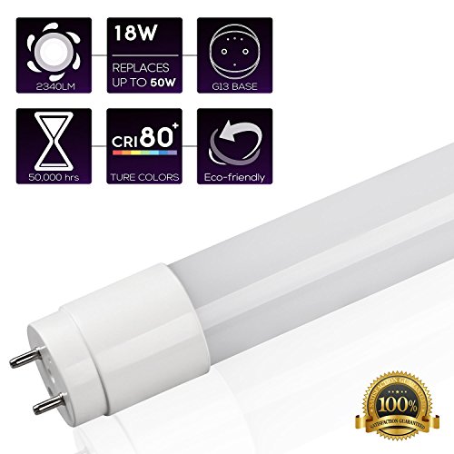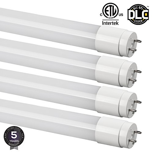 T8 LED Linear Light Tube, 4FT, 18W (50W Equivalent), 2340lm, Work WITH Ballast, Dual-end Powered, Frosted Cover, DLC & ETL Qualified, Daylight 5000K, Pack of 4