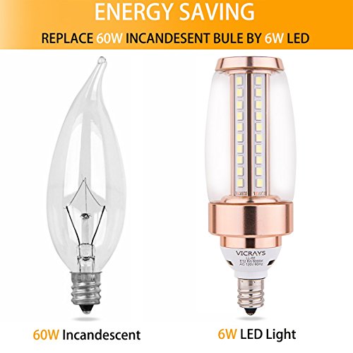 - ✅ENERGY SAVING -Replace 60W incandescent bulb by 6W led candelabra bulbs, save over 90% on electricity bill of lighting.