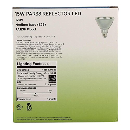 Westinghouse 5006000 90-Watt Equivalent PAR38 Flood Dimmable Cool White Energy Star LED Light Bulb with Medium Base