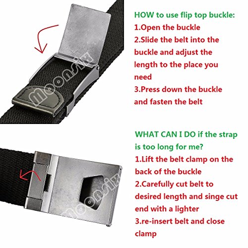 Product Features: Moonsix belts are made with high quality canvas. Fully Adjustable. You can precisely adjust your belt to the perfect fit. Our sturdy, lightweight, scratch resistance buckles are made with Zinc Alloy to create a substance with greater strength and resistance to corrosion. Awesome casual accessory for indoor and outdoor activities.