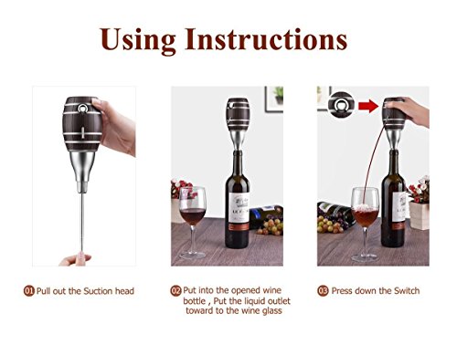 Studio : innovations plus Publisher : innovations plus Product Description Our aerator decanter makes it possible to de-clutter your bar or kitchen, save time enjoy delectable glasses of red or white wine. Powered by 4 AAA batteries, the electric wine dispenser machine brings your tasting sipping experiences into the modern age. WINE AERATOR TAP TOP FEATURES ? FULL ELECTRIC - Quickly Easily Decants, Aerates Pours Wine Straight Into Your Glass Stop messing around with separate wine essentials. Save some time hassle by pouring with our decanting wine aerator spout! Charged up powered by (4) AAA batteries, the wine aerator pourer stopper pours a glass of great tasting vino in just seconds. ? PORTABLE SIZE - Easy to Pack Carry Around - Perfect Choice for Traveling Wine Lovers Frequent festivals, tastings or taster parties with your wine-loving friends? Take our electric wine pourer with you! Ready to put on a spectacular pouring show, this 2-in-1 wine aerator decanter will surely impress even the pickiest sippers, guzzlers tasters. THE BENEFITS OF AERATED WINE ? Eliminates Smells for Ultimate Freshness Aerating wine with air eradicates foul odors left behind. The aromas pop the tannins burst in your mouth with every single sip! ? Lessens Acidity to Reduce Bitter Taste Aerating with our electric wine aerator dispenser ensures you're drinking nothing but the best. Aerated wine goes down smooth! UNIQUE GIFTS FOR WINE LOVERS Since it takes care of the pour from start to finish, there's no need for any extra wine drinking tools. Designed to look like a vintage wine barrel, the aerator machines are the hottest wine gifts of the year. Give them as Christmas, birthday, retirement or wedding gifts. 0