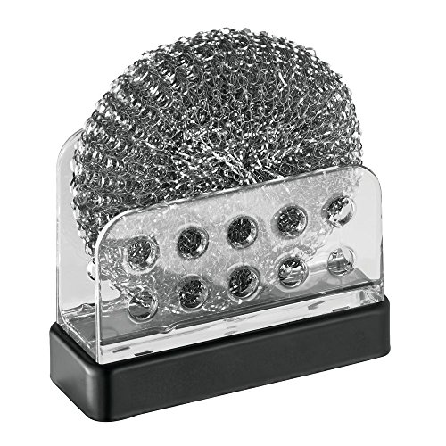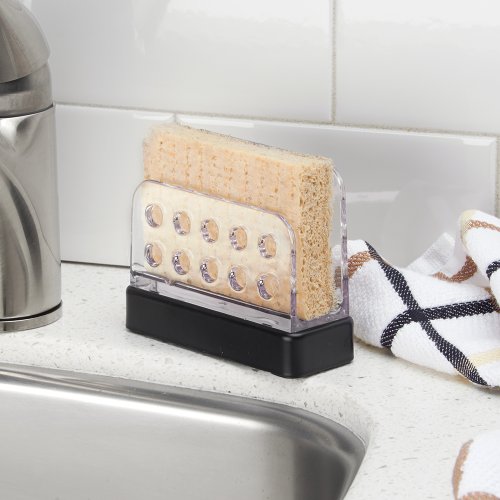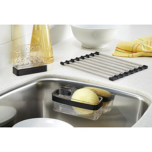 InterDesign Forma Kitchen Sink Sponge or Scrubber Holder – Organizer Caddy for Sink Accessories, Matte Black/Clear