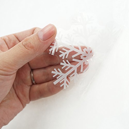 - The snowflakes stickers are made of PVC (electrostatic membrane) and they are durable for long time use. Easy to clear and leave no trace.
