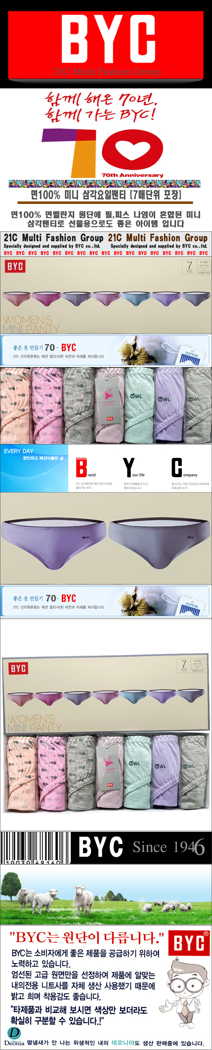 상 품 설 명  BYC 순면 100% 7 DAY미니 요일팬티로 신축성 좋아 착용감이 가볍습니다