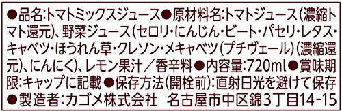 原材料:トマトジュース(濃縮トマト還元)、野菜ジュース(セロリ・にんじん・ビート・パセリ・レタス・キャベツ・ほうれん草・クレソン・メキャベツ(プチヴェール)(濃縮還元)、にんにく)、レモン果汁/香辛料