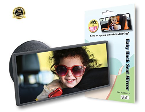 -. Feature : FOR FRONT FACING BABY in rear seat of car. Your baby just said a new word at the back seat? Or did he just wake up? Can't miss it! Just peek n' smile, 'cause there he is right in front of you in our friendly little mirror placed on your front windshield of car just above eye level. , Firmly attached to glass with a suction. Adjustable. 5"/2" . Compatible with windshield inclination of less than 40°. / NO AGE LIMITATIONS! For your 2 to 22 year-old child in back seat! Unlike mirrors directed for rear-facing baby in car, this mirror doesn't become useless after your infant reaches 2. Intended for any traveler seated behind you middle or right, you can safely view and communicate with whoever you are driving around - kid, friend or parent. Just direct the mirror towards him and you can safely glance at, it all the while keeping an eye on the road. / ZERO DANGER FOR CHILD! Far away from your baby's face in case of crash or abrupt stop - AND YOU BEST REMINDER - you will never have to worry again about forgetting your dear sleeping toddler in the car! Can't miss him when parking! Clear view, no loosening straps, no shaking or twisting, no need for headrests. / MULTI-TASK MIRROR! Three in one! BLIND SPOT MIRROR - Light & handy, you can re-position it at the side of your front windshield and detect tightly close cars on parallel lanes (See photo). Use it to increase your safety while driving. Perfect for parking! MAKEUP REFRESHER! Making a quick stop? Stick waiting in line? No need to search your bag for a mirror. With a tiny tilt of your head you can also use it to refresh your lipstick - Just don't do it while you're driving (Declaim!). / WARRANTY - Not happy with the product? No problem. 90 days guarantee. So don't miss out - click the button now and order our Peek-n-Smile back seat mirror. A wonderful BIRTHDAY GIFT for a two year old and up.