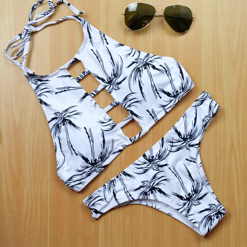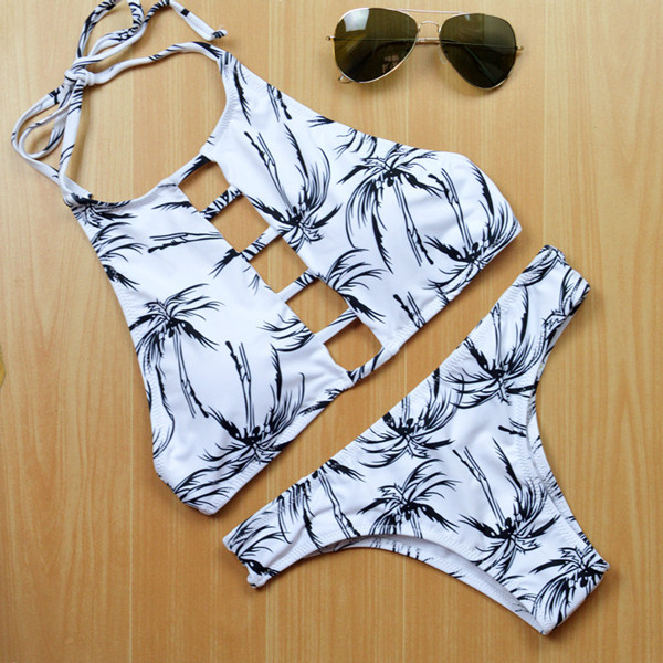 Swimwear 2016 Black White High Neck Sexy Halter Female Tanga Bikinis Women Biquini Vintage Push up Brazilian Retro Thong Bikini Set Swimsuit Bathing Suits Swimming Suit for Women