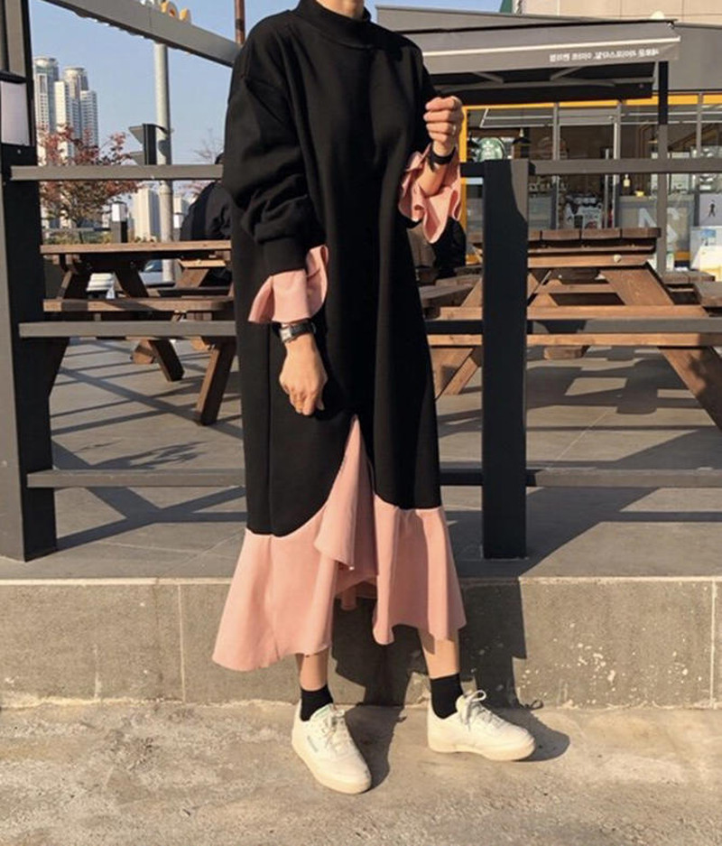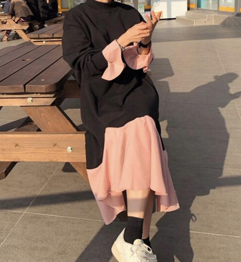 ♢ポイント♢ 裾と袖のフレアデザインがおしゃれなロングワンピース。 オーバーサイズでトレンド感満載の一枚。