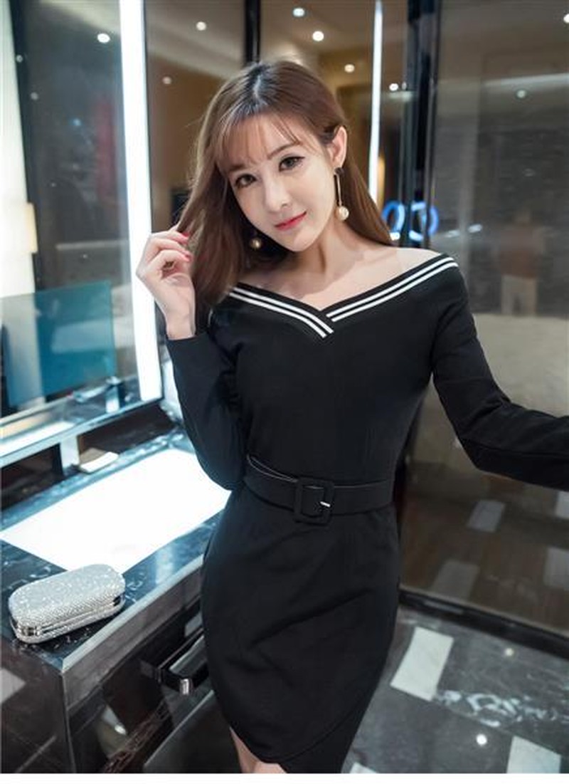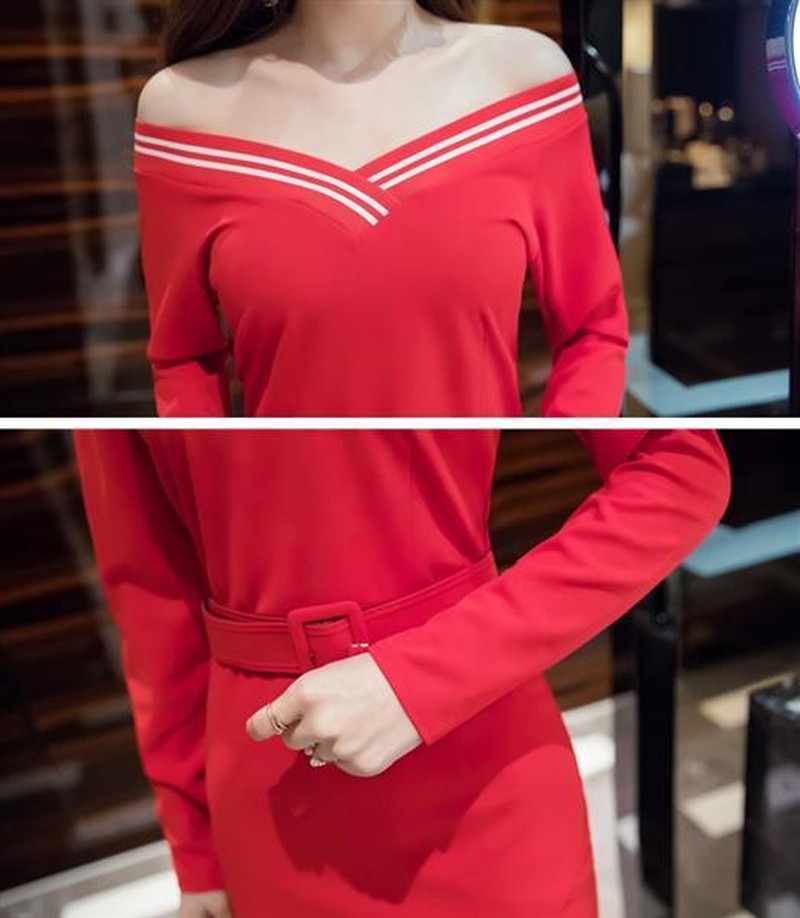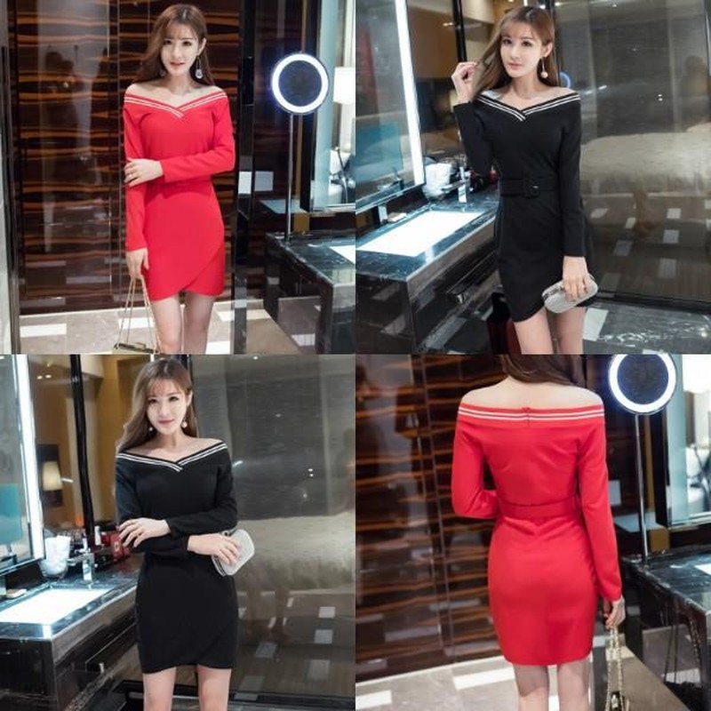 ♢ポイント♢ 広めのVネックラインがキレイなタイトワンピースです。 オフショルダーにアレンジ可能です♪