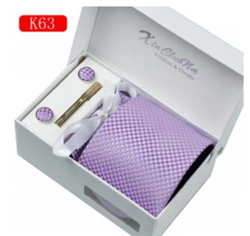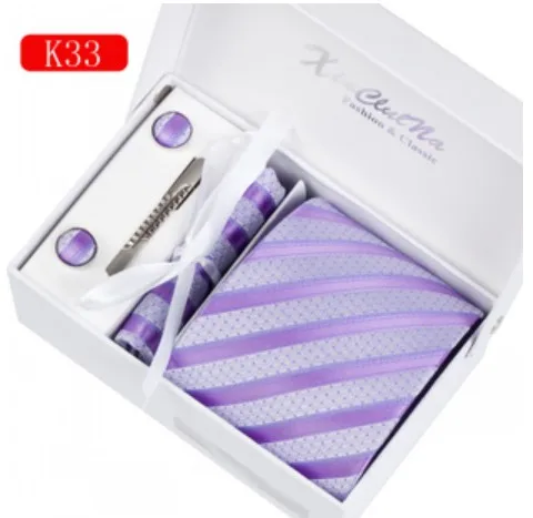 | [해외]남성 패션 넥타이 손수건 커프스 세트 보라색 폴리 에스테르 넥타이 Gravata 아저씨 Colar 파스타 스트라이프 남성 비즈니스 파티 |