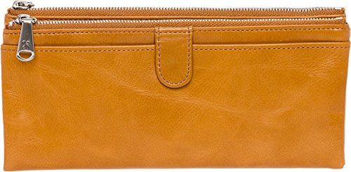 If you're looking for a wallet that's as versatile as you are then this Genuine Leather Vintage Taylor Clutch Wallet by Hobo is your ideal match. With a focus on the everyday woman, Hobo is all about making wallets and purses that are designed with all the features women are looking for in their accessories. A dual magnetic closure secures the 4 credit card slots, 3 bill slip pockets, and ID window w/ thumb glide when not in use giving you and added sense of protection. For quick access 2 additional zip pockets with snap closure and 2 zippered pockets are featured on the exterior for storing your phone, keys, or credit card. Measures 8.25" x 4" x 1".Feature