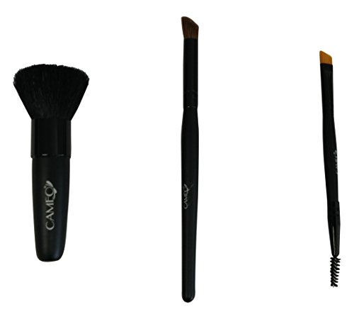 -. Feature : Cameo mineral powder brush x 1 piece / Camo duo ended mascara/eyebrow brush x 1 piece / Cameo angled eyeshadow brush x 1 piece / Makes for great gift / Each brush comes in its own PVC sleeve