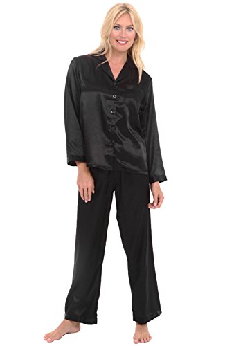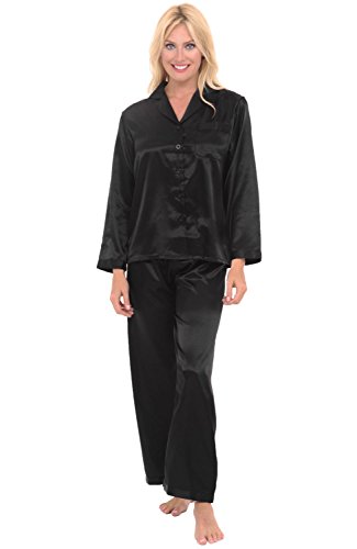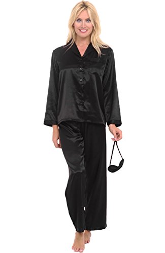Del Rossa Women's Satin Pajamas, Long Button-Down Pj Set and Mask, Medium Black (A0750BLKMD)