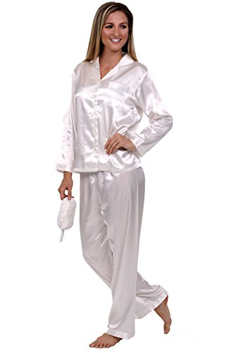Del Rossa Women's Classic Satin Pajama Set - Long Pjs, Medium Cream (A0750CRMMD)