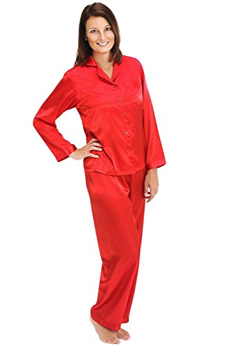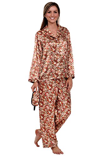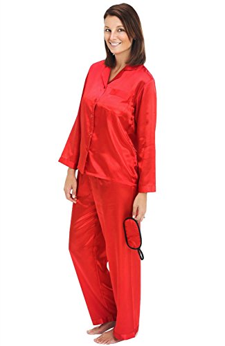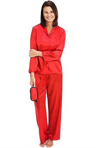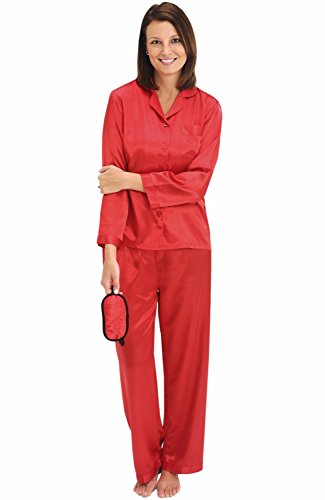Del Rossa Women's Satin Pajamas, Long Button-Down Pj Set and Mask, Large Red (A0750REDLG)