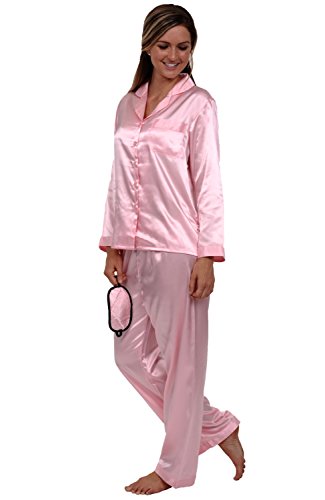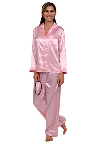 Del Rossa Women's Satin Pajamas, Long Button-Down Pj Set and Mask, Medium Pink (A0750PNKMD)