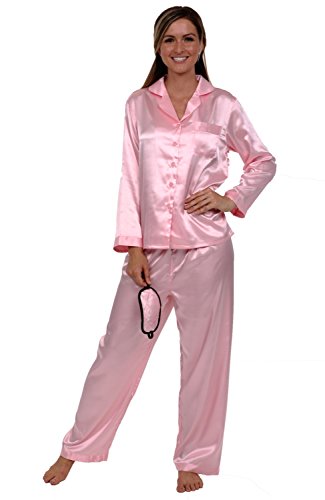 Del Rossa Women's Satin Pajamas, Long Button-Down Pj Set and Mask, Small Pink (A0750PNKSM)