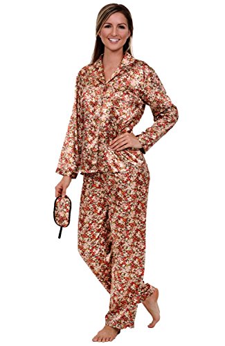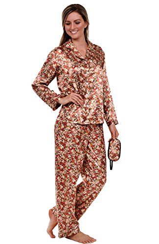 Del Rossa Women's Satin Pajamas, Long Button-Down Pj Set and Mask, Small Flowery Meadow (A0750P93SM)